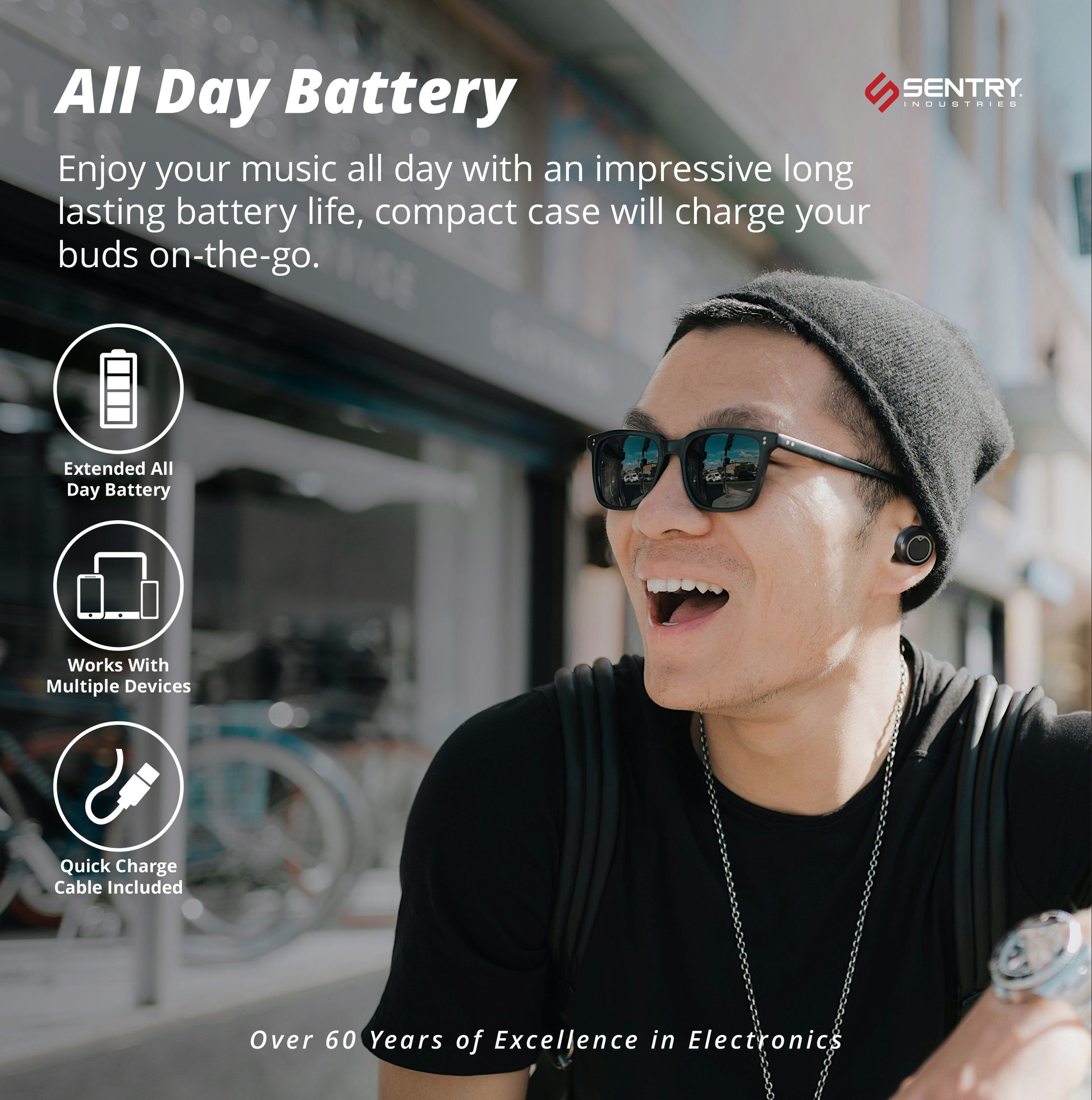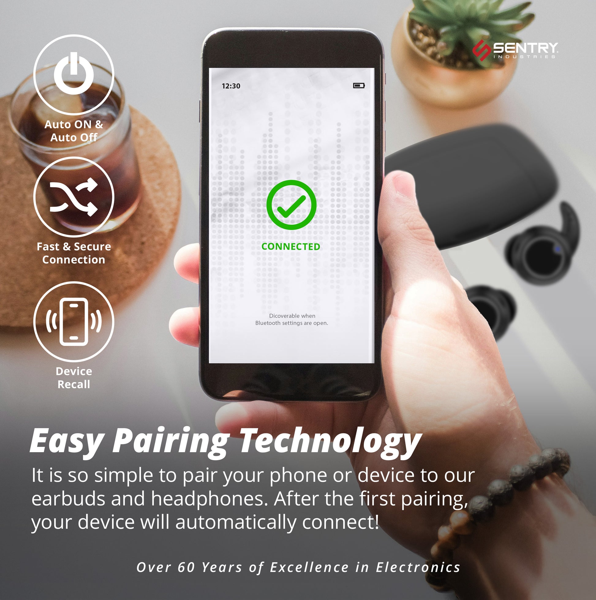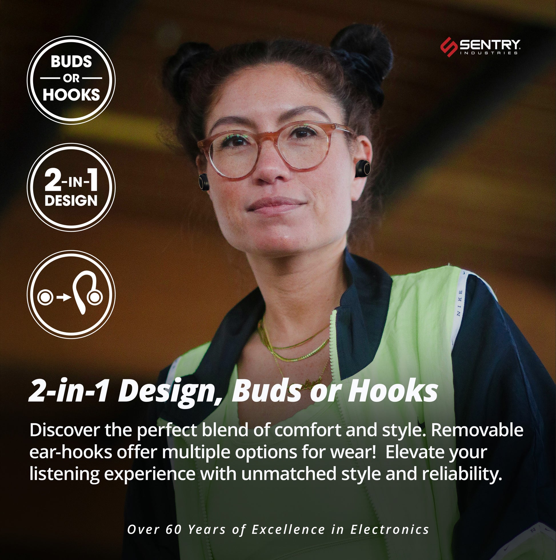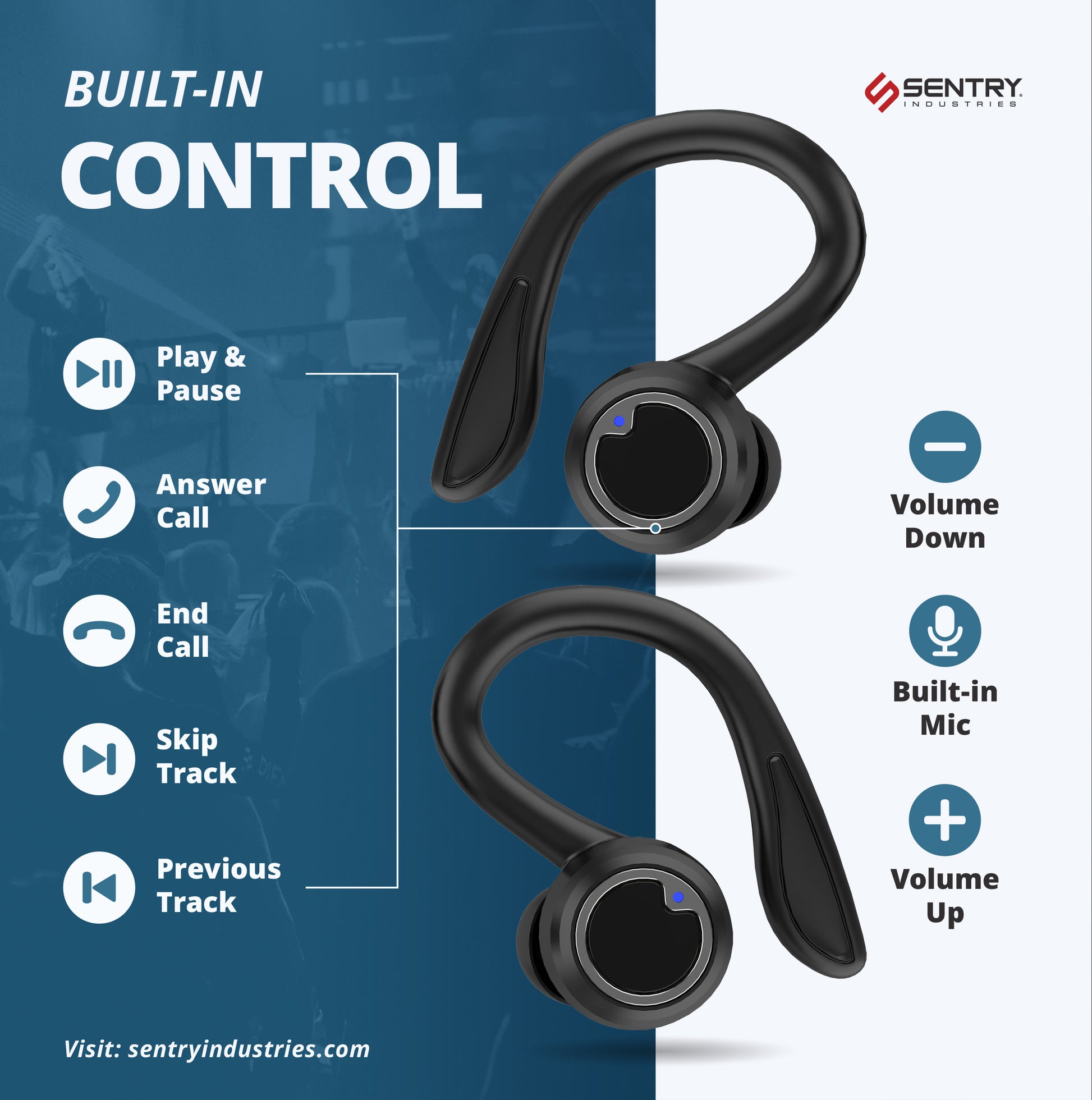 - Wireless Versatile Design: Sentry OSE Sport Hook Earbuds feature a 2-in-1 detachable hook design for secure, comfortable fit during active use. Utilizing Bluetooth V5.3 for up to 30 feet of wireless connection with no app needed to pair. These earbuds are great for activities such as running, biking, weightlifting, and more. When you’re done with your exercise, you can then detach the hooks on your earbuds so you can find your most comfortable fit.