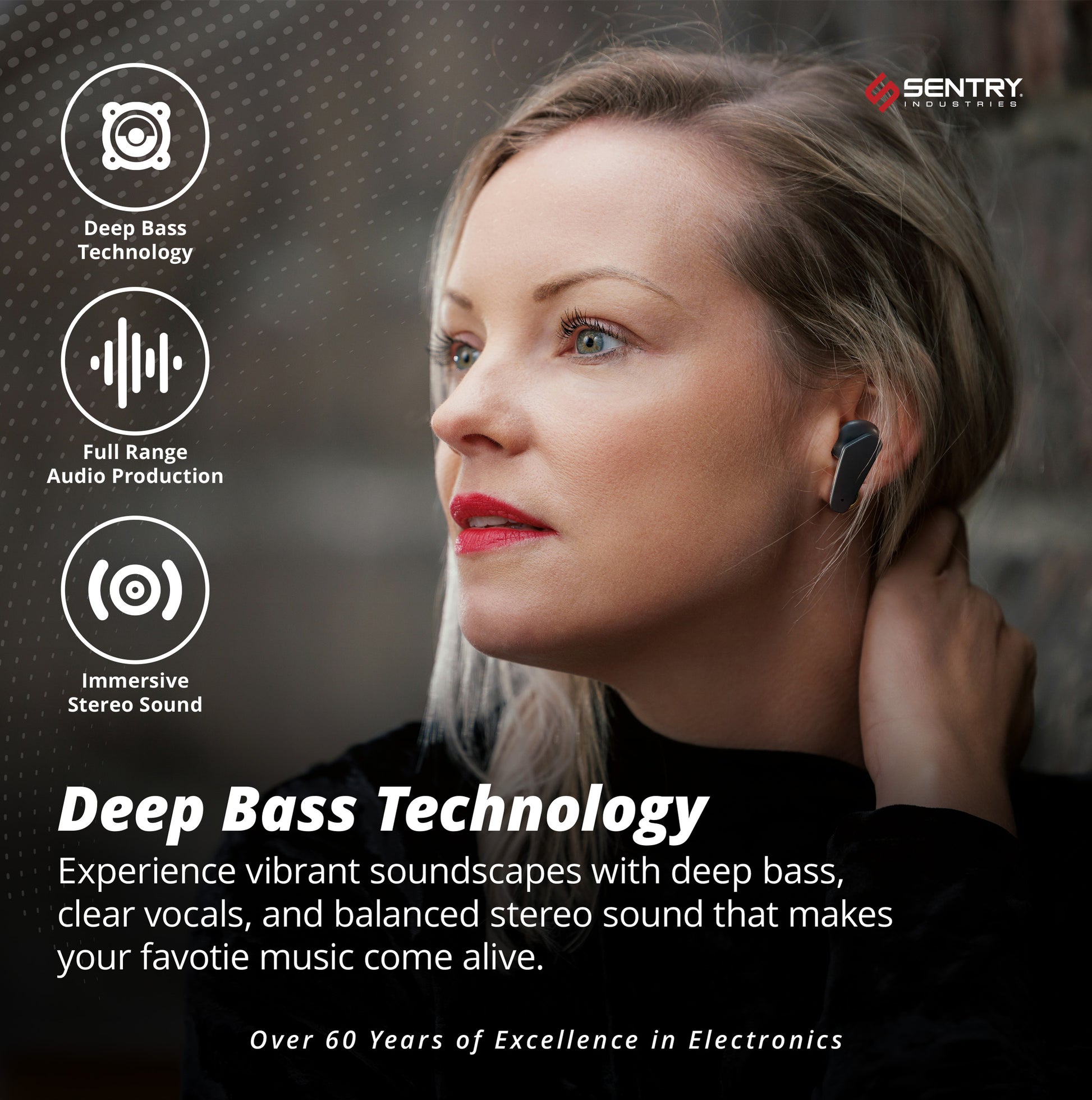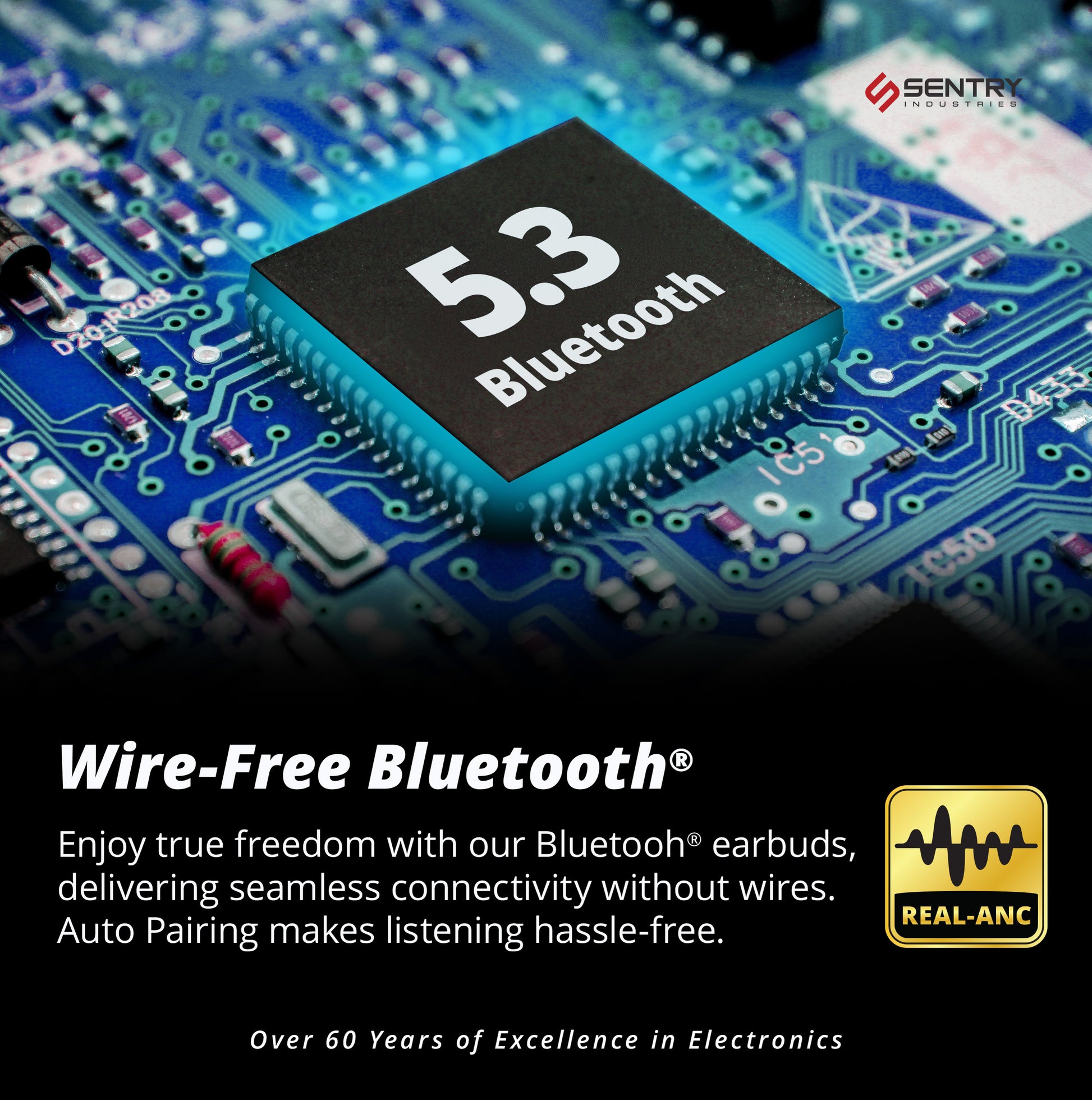 - Bluetooth Wireless Connection: Sentry Stems Earbuds utilize Bluetooth V5.3 for up to 30 feet of unbreakable connectivity. Requiring no app to connect your earbuds to your listening device. No longer will you have to deal with the hassle of tangled cords when you opt for Sentry’s Active Noise Cancelling Stems Earbuds.